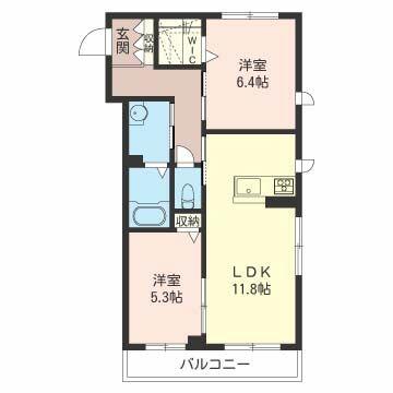| 間取り | 2LDK(LDK11.8帖 洋室6.4帖 洋室5.3帖) | 主要採光面 | 南 |